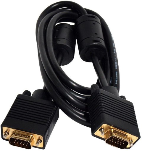 Przewód VGA (wtyk) - VGA (wtyk), o długości 5 m. Przekazywany sygnał: Video. Ferrytowany. Nylonowy oplot. Pozłacany wtyk.